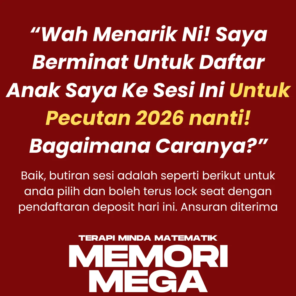Rahsia untuk skor Matematik daripada gagal kepada A dalam tempoh hanya 3 hingga 6 bulan sahaja. Dengan hanya 3 proses berkesan, anak anda akan kuasai konsep solving skills dengan lebih mudah dan pantas!